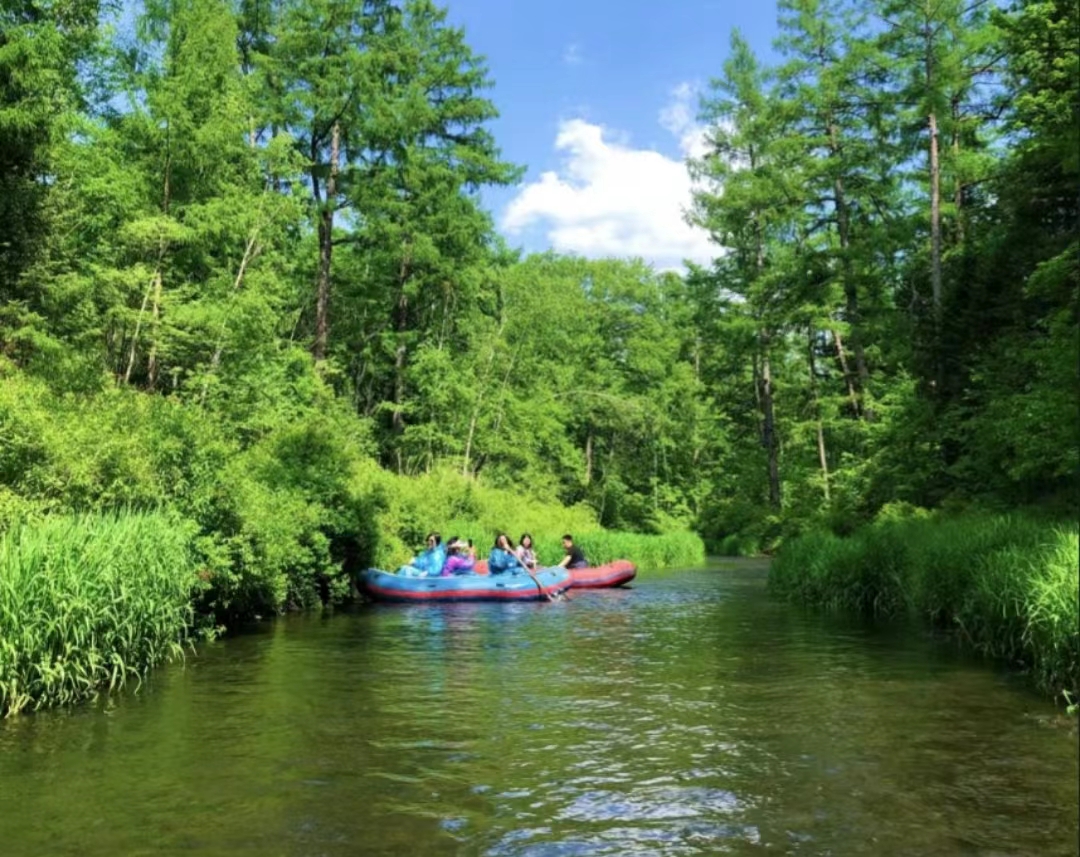 在吉林延边朝鲜族自治州安图县203省道长白山域内,有个风景秀丽被称为“魔界”的景区,这就是大泉河漂流地。采用的是国内其它漂流很少使用的椭圆形橡皮艇,这种皮艇安全性好,